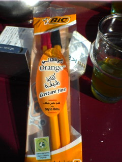 モロッコのスーパーで100円くらいだったっけな。ビックは油性ボール界で最強の描きやすさであることと恐らく文具デザイン界でも上位10位以内に入る秀逸さと思うだけに3本セットでこの付加価値。本体にビックのシルク?印刷はない。其れで経費軽量化?