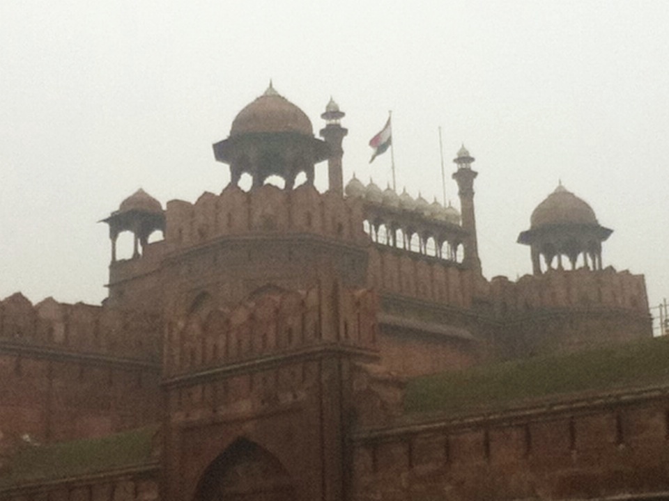 駅前でリクシャ(人力)を捕まえてラール・キラーまで走らせ(当初50ルピーで渋られたが連れてくというので乗ったが)、